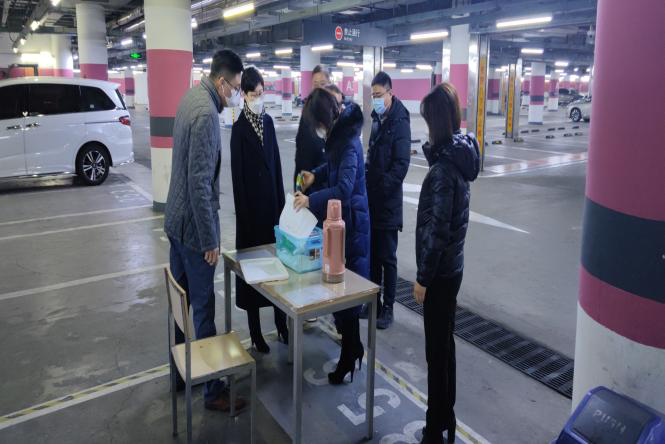 泰達大廈值守人員在樓宇入口及車輛出入通道,嚴(yán)格執(zhí)行“三碼一測溫”及登記制度,重點部位每兩小時進行消毒處理。