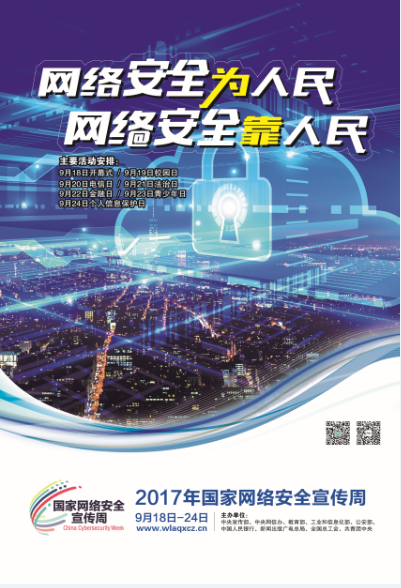 ??????? 2017年國家網絡安全宣傳周暨第四屆天津市網絡安全宣傳周活動,活動時間定為9月18日至9月24日,活動主題是“網絡安全為人民,網絡安全靠人民”。