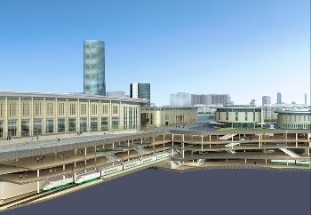 ???????? 天津站交通樞紐鳥瞰圖??????????????????????????? ??????? 天津站軌道換乘中心剖透圖