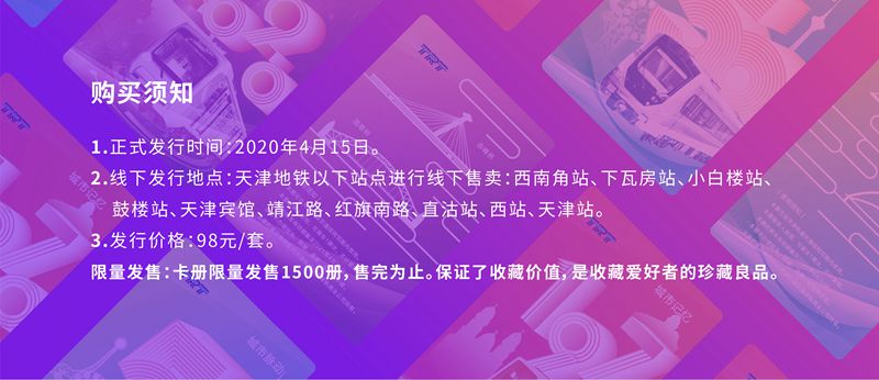 2.從4月15日起,線上購買的紀(jì)念冊全面發(fā)貨,同時(shí)在以下站點(diǎn)進(jìn)行售賣:西南角站、下瓦房站、小白樓站、鼓樓站、天津賓館、靖江路、紅旗南路、直沽站、西站、天津站。
