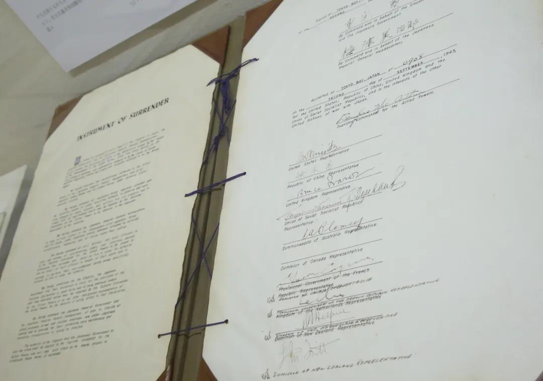 日本外務(wù)省外交史料館2015年8月31日展出日本二戰(zhàn)無條件投降書原件。這是外務(wù)省時隔20年再次公開投降書原件。圖為2015年9月1日在日本東京外務(wù)省外交史料館內(nèi)拍攝的日本二戰(zhàn)無條件投降書原件。??新華社記者劉天/攝