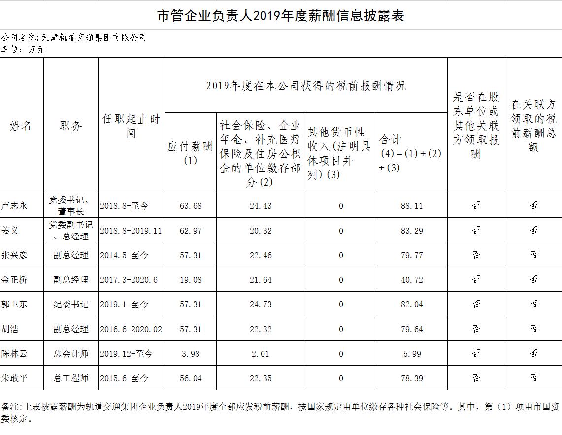 市管企業(yè)負(fù)責(zé)人2019年度薪酬信息披露表