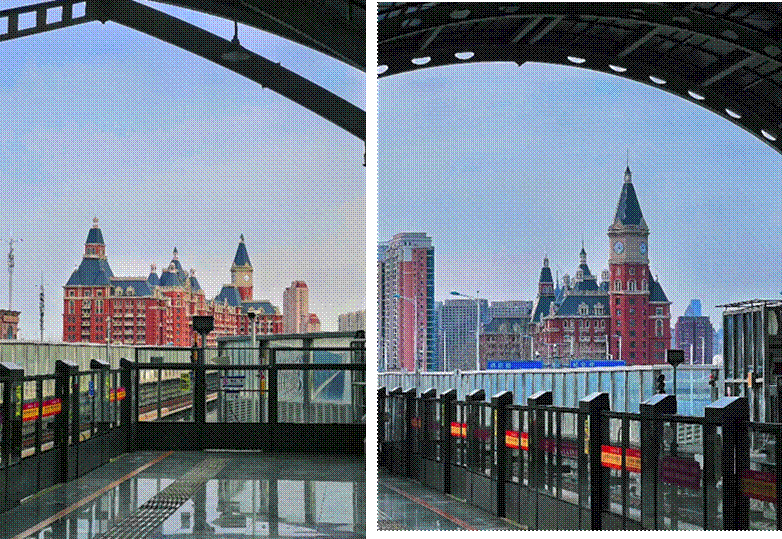 下面來說一說近期大熱的最美地鐵站陳塘莊站,這是個不用出站就能欣賞到美景的高顏值地鐵站。露天站臺車站頂棚形成的弧形天際線構圖,夕陽的景色真是絕了!前方600米一棟英式建筑洋樓映入眼底,夕陽下的城堡與地鐵站完美融合,將天津這座具有萬國博物館之稱的城市的美感展現的淋漓盡致!