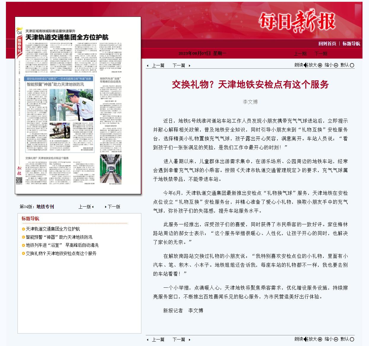 交換禮物?天津地鐵安檢點(diǎn)有這個(gè)服務(wù)