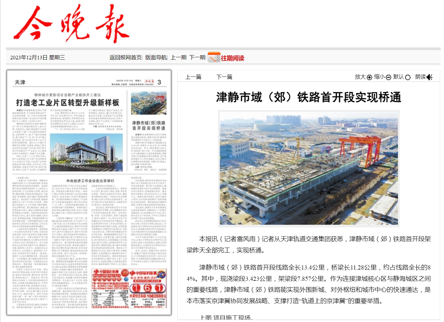 津靜市域(郊)鐵路首開段實現(xiàn)橋通