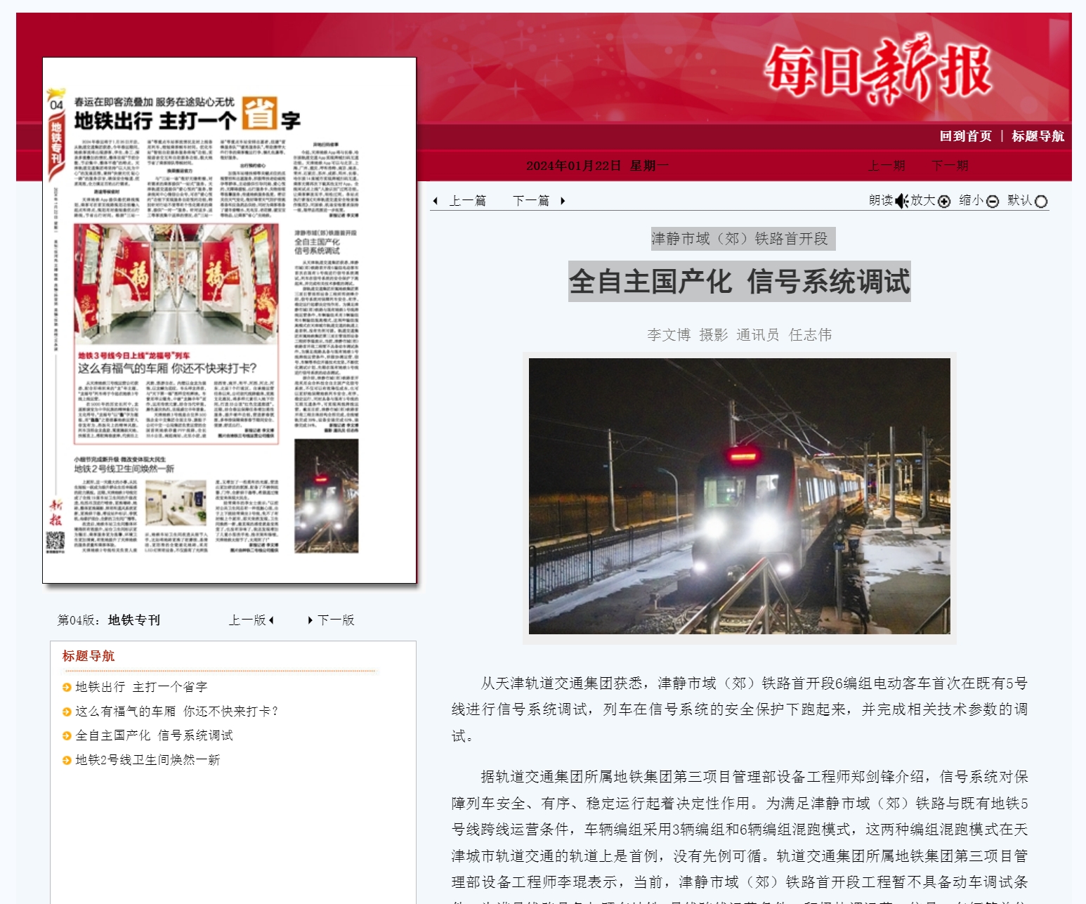 津靜市域(郊)鐵路首開段全自主國產(chǎn)化信號系統(tǒng)調試