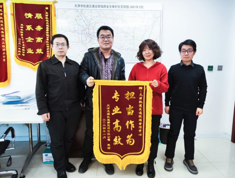 1月25日下午,天津龍源軌道新能源有限公司將一面印有“擔當作為 專業(yè)高效”的錦旗送到線網(wǎng)管理公司(中心)地鐵保護管理辦公室,對高效辦理該公司分布式光伏項目涉地鐵保護區(qū)審查手續(xù)表示感謝。