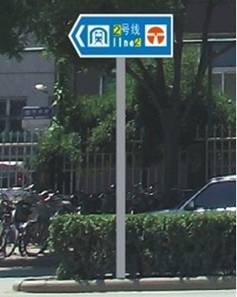 在距離各車站500米至100米區(qū)域范圍內(nèi),均設(shè)有站外導(dǎo)向標(biāo)志牌。