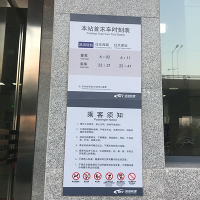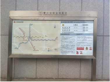 車站每個(gè)出入口處均有軌道交通位置標(biāo)志、車站位置標(biāo)志、本站首末班車時(shí)間牌與綜合信息欄。