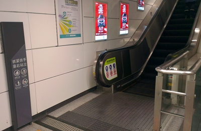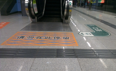 2、乘梯時(shí)請(qǐng)面向扶梯運(yùn)行方向,兩腳踩在梯級(jí)黃線內(nèi)靠右站穩(wěn)并緊握扶手帶。